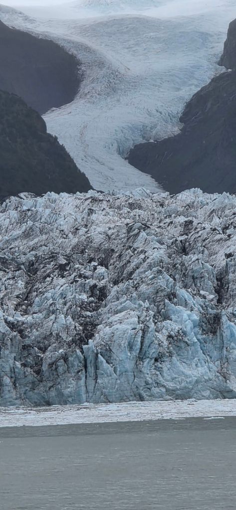 Amalia Glacier is the 2nd largest glacial field in the world, if I recall correctly. The total size (we can only see a small portion of it) is immense. I recall it being noted that enough water is trapped in this vast sea of ice to satisfy the world’s population for several decades. Seems improbable but that’s what they say.