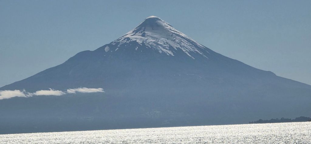 The last one is a typical cone shaped volcano. It erupted only a decade ago and might do so once again in a couple of decades. The last blow threw so much ash into the air that the Buenos Aires airport, a continent to the east, closed down. Beauty and danger combined. That often is the case, isn’t it?