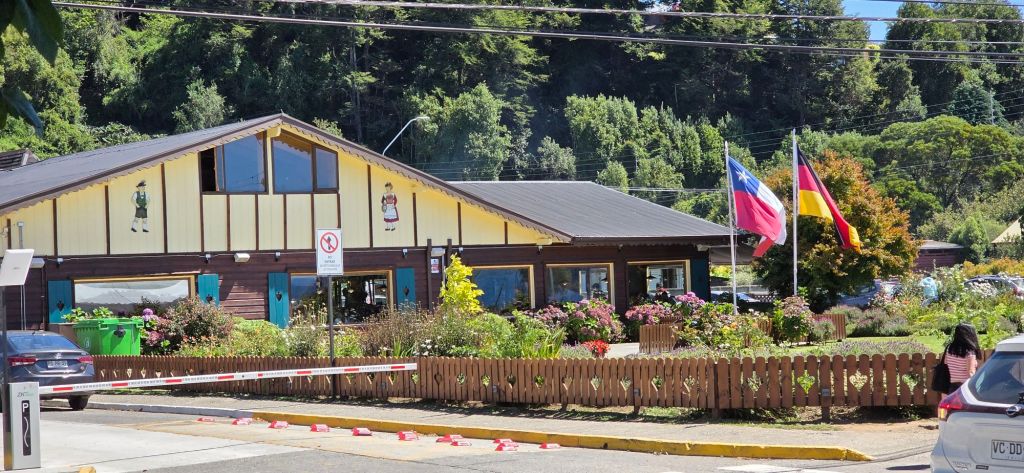 Our next stop was at Puerto Montt and the nearby lake named Llanquihue. What is remarkable about this area is how it was settled. In the mid 19th century, the Chilean government made generous offers to skilled German farmers and craftsmen … offering land, subsidies, and tax breaks if they would emigrate and develop this area. They wanted Catholic settlers but got mostly Protestants. That aside, the project worked. Like the Italian, Croatian, and other ethnic communities found elsewhere on this journey, the German influence is found everywhere.