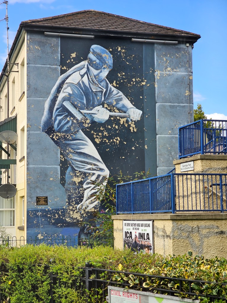 In the pics below are two of the many murals that are found through the Bogside. I’m not certain of the meaning of the second, but the first captures a British soldier breaking down a door looking for IRA soldiers.