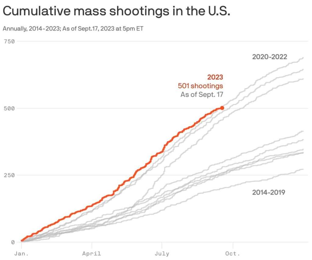 One last kick at this cat. As of a few days ago, we had over 500 mass shootings in the U.S. We are on the way to another record year of human carnage. Is this not worthy of our attention and our passion? Here we are talking about lives lost, bodies maimed, and families shattered. Surely, this should count as much as any freaking football game.