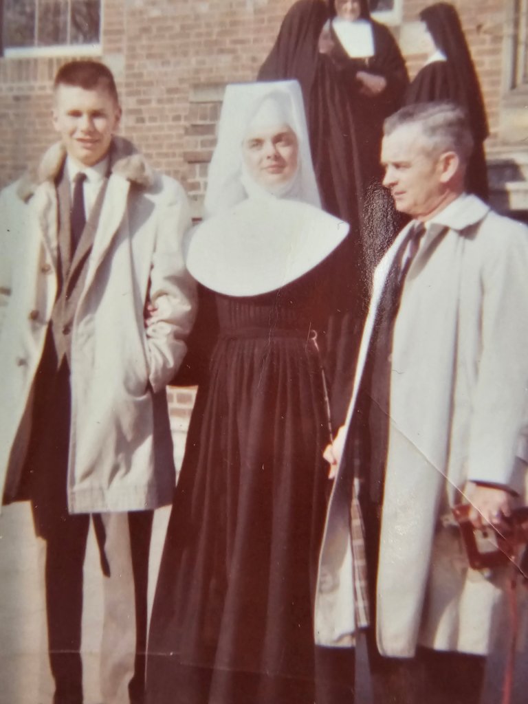 I took religion seriously, as did several in my family. Above, I am with my female cousin who entered a convent. I worked hard on being a good Catholic, though I should have noticed the warning signs as I embraced increasing doubts about many church teachings. Her time as a nun was short as she sickened and passed away in her early 20s. Perhaps that contributed to my doubts about a just Deity.