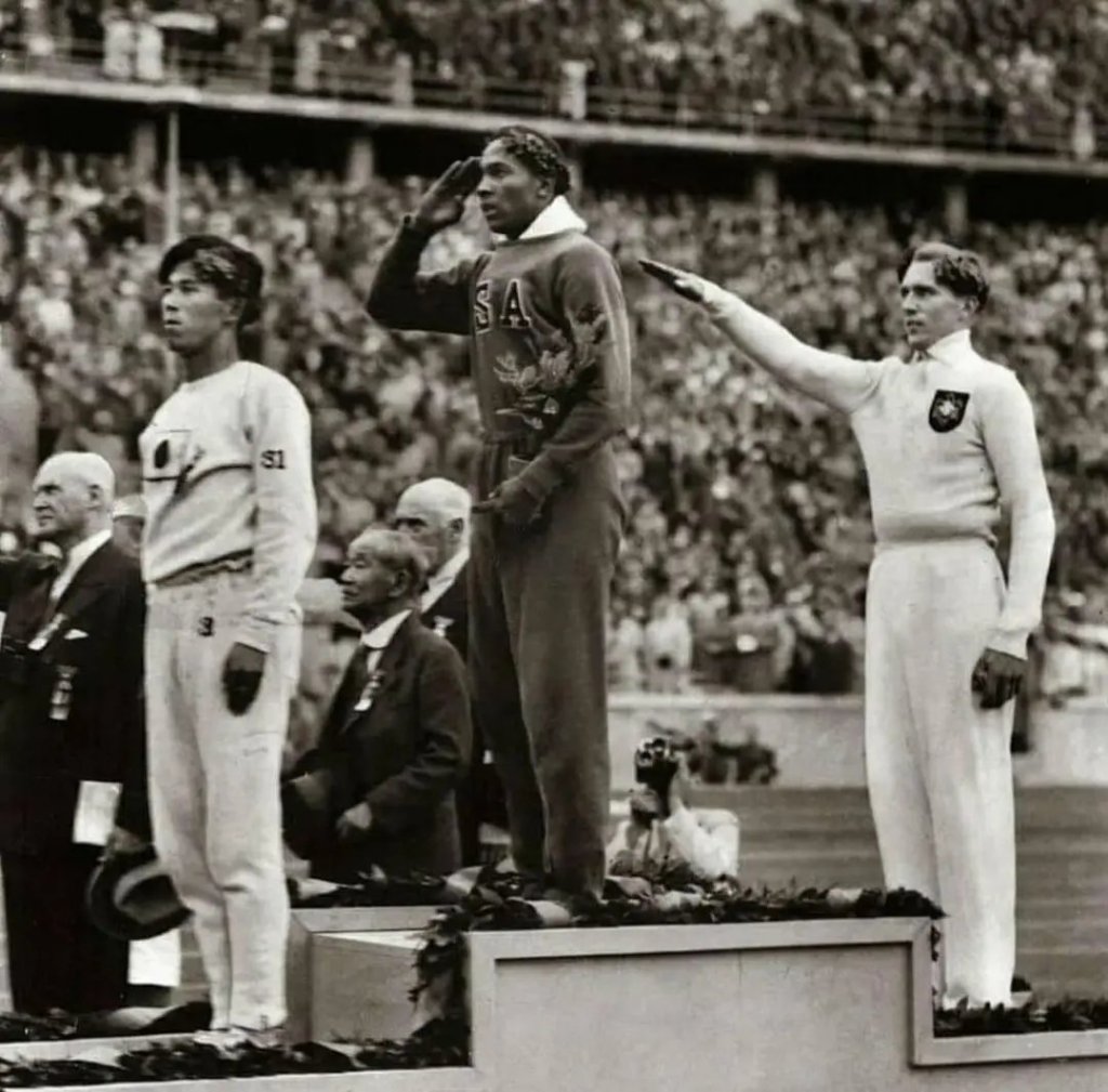 It is very difficult to detect why such a post would get anyone banned for life, never mind for a day. Of course, there is the German athlete giving the Nazi salute. In reality, this man wound up becoming a good friend of Owens, giving him suggestions that helped the Black athlete win gold in the long jump event, while he settled for silver much to the displeasure of Herr Hitler. And despite the salute, he was no Nazi. When his political perspective became all too clear, he was sent to the front and died fighting in the Italian campaign.